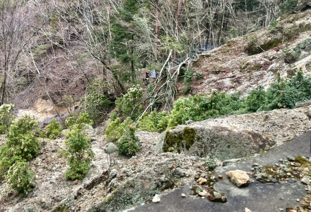 登山口へ向かう車道は、落石や崩壊しそうな箇所もあって慎重に走りました。