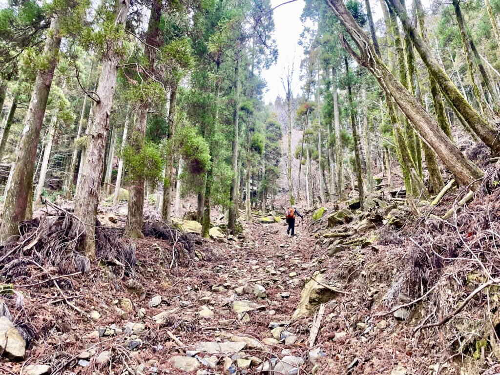 登りはじめはしばらく、杉林の林道を歩きます。