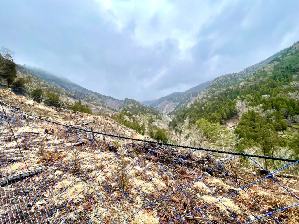 伐採されて見晴らしの利く谷間。